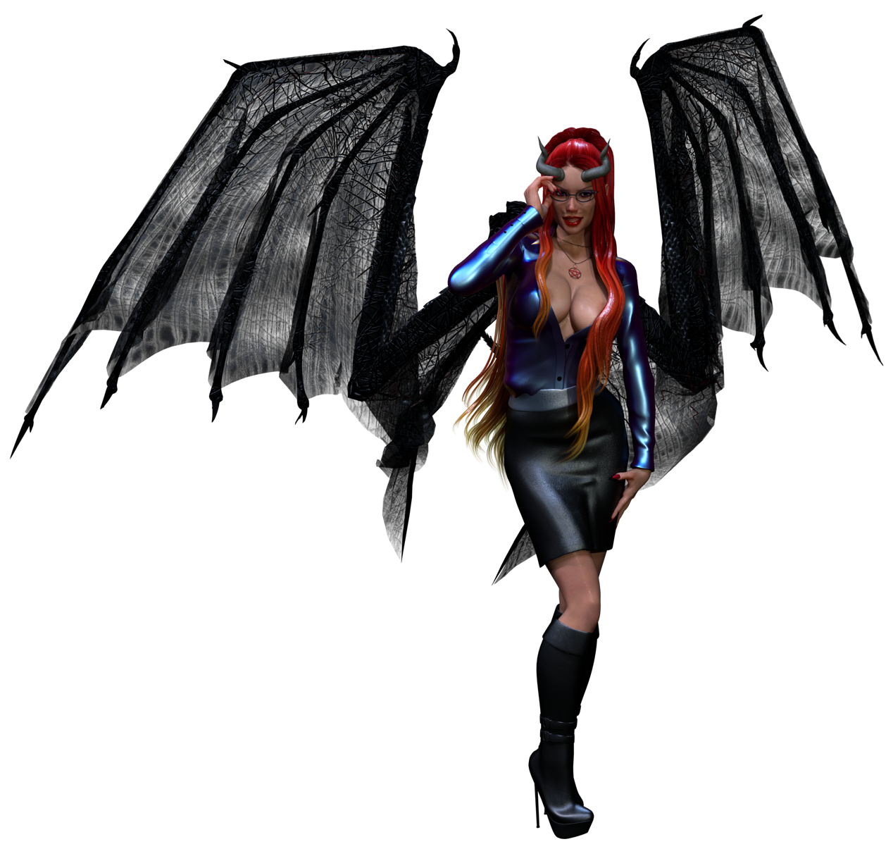 Preferring to dress in business attire, she also will sometimes leave her cleavage plainly visible and exposed, as she likes to flaunt it. She wears a pentacle necklace and glasses. She avoids any kind of pants as she likes her legs visible, and will wear high heels to accentuate her already impressive height to add to her imposing stature. Her colors of choice are black and red, but does have a fondness for silver.